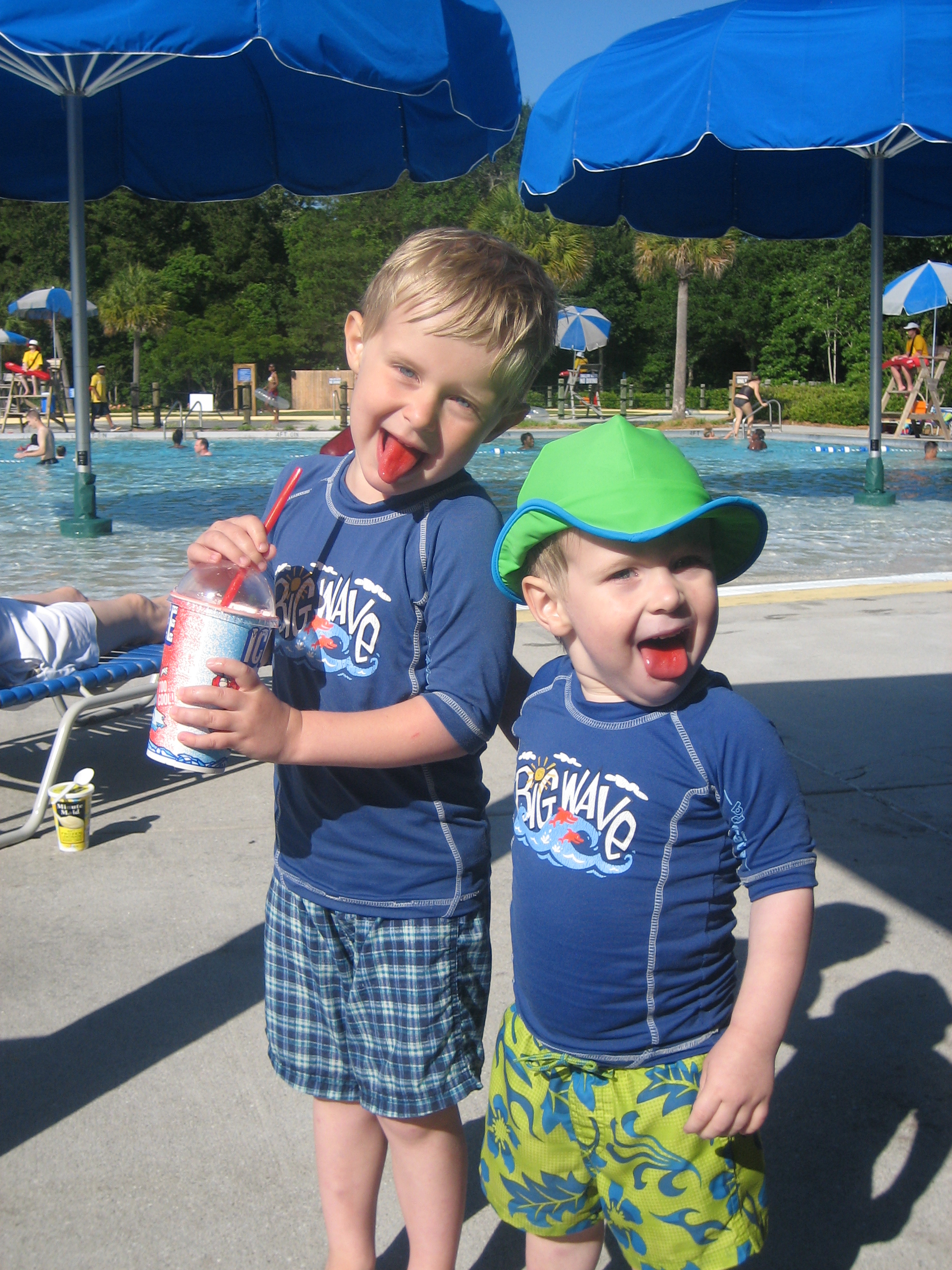off thier red tungs after a icee treat on a hot day at the water park. They’re having so much fun together. We’ll try to blog more later. Hope you’re all having a good week – even if it’s not on vacation.