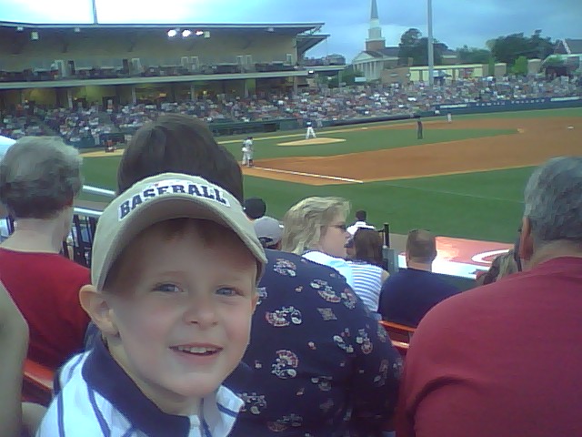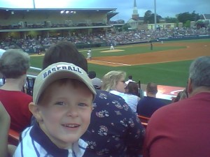 Well, we’re on vacation in Edisto this week, but I wanted to try catching up on my blog.  This past Friday (May 23rd) we took some of the college students at Morningside to the Greenville Drive Baseball game.  Anderson went with us for his first real baseball game.  Here is photo off of my cell phone from the evening.  He was ready to go by the bottom of the 1st inning.  But, after cotton candy, hot dogs, ice cream, and some time playing ball with dad behind the bleachers – he was ok.  The thing he loved most of all was the fireworks at the end of the game!  I loved having him with us for the night.  It’s one of the ways I try balancing ministry and family time.  He loved hanging out with the college students too.  We will try to update soon with photos of us at the beach.  Got to go for now – time to play on the beach with Ashley and the boys.