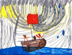 Just thought I would share some of the art work that our oldest son, Anderson, has done recently. He calls them his, “projects.” The first is an American flag that he drew in his kindergarten class this week while learning about American history. The second is a picture he drew this morning is Sunday School when they learned about Jesus calming the storm while he was out on the boat with his disciples. Ashley asked him if that was a picture of Jesus and the disciples on his boat and he said, “no, it’s me and Ellis…see the lightening is hitting me.” Haha…at least he’s listening well to God’s Word and drawing such wonderful little pictures. (If you click on each of the pictures you can see a larger version)