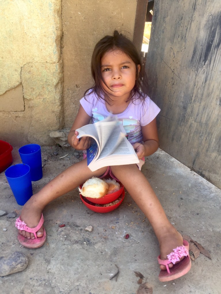 Today at the dump, I helped out in the pharmacy. Although the people in Honduras seem happy and content, the need here is great. More so than I had imagined. When we arrived at the clinic this morning, there was already a line formed outside waiting on our medical team. Let me tell you, we worked non-stop!! Between 10:00am-4:00pm, our 5 doctors and medical team treated 176 patients! 556 prescriptions were filled! I was fortunate enough be able to slip out and take a peek at the EBC youth serving lunch to the local children. They typically receive 2 good home cooked meals a week and they come eager to eat! I walked around to the back of the building and happened to notice a small girl walk outside with her food. I was expecting to see her sit down and start eating but she was too excited to eat, she wants to read. She was one of 250 people given a new Bible today and she was so eager to read it! I wondered how many of us would have read that Bible first or how many of us would have satisfied our cravings.