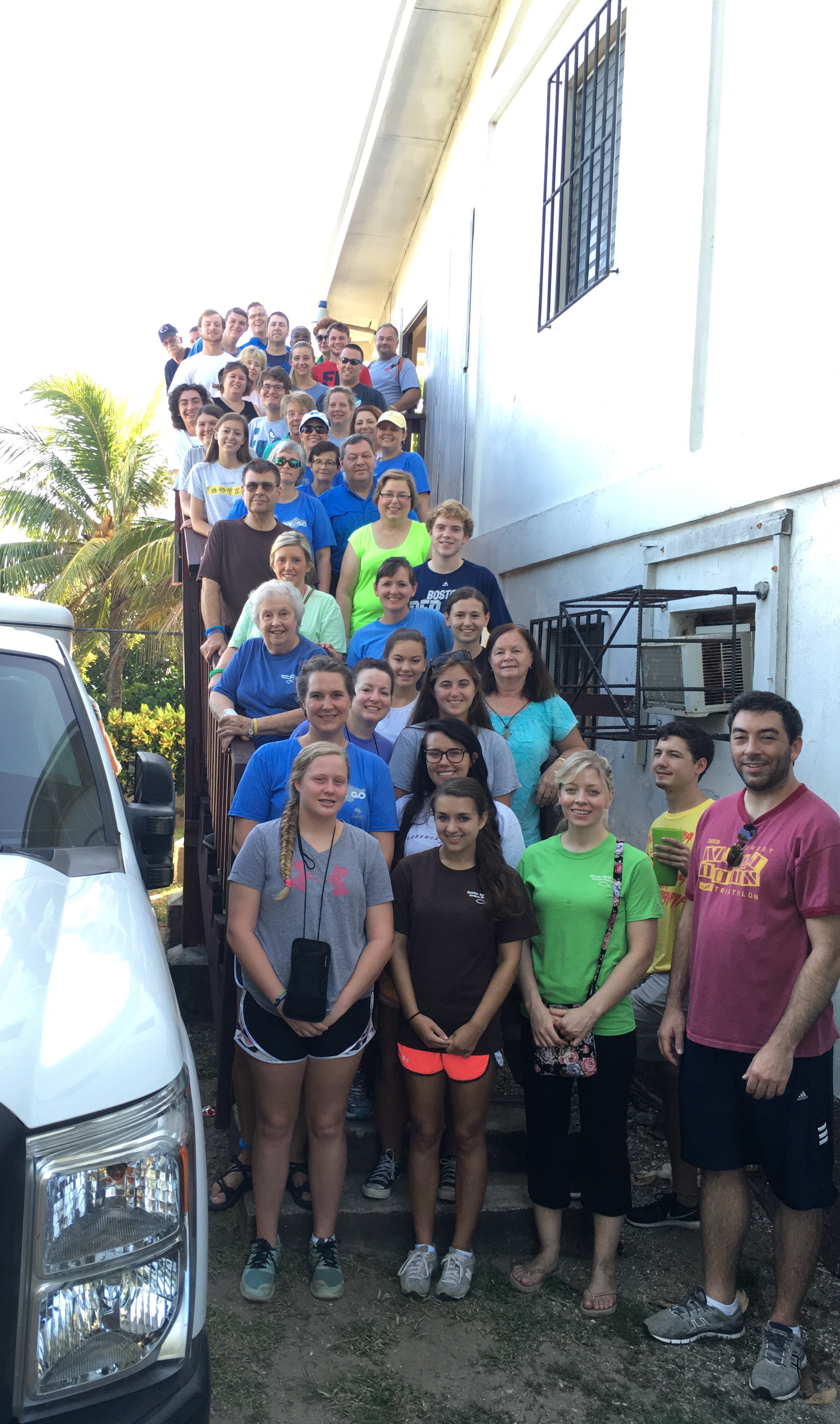 Today began early and we packed up and loaded trucks at 6:00am to get 44 people three hours across the country to the airport in time to fly to Roatan. To explain to you God’s provision for our team let me share one story from today. On the long bumpy dirt road from Limon one of our vans blew out a tire. Typically there is nothing on that road for miles at a time. Van #2 rolled to a stop with a busted back left tire just 25 yards from a tire repair shop! …on a dirt road people! That is all God. To make it even better, the man jacked up the tire and in a matter of minutes had us rolling again. Wow.
