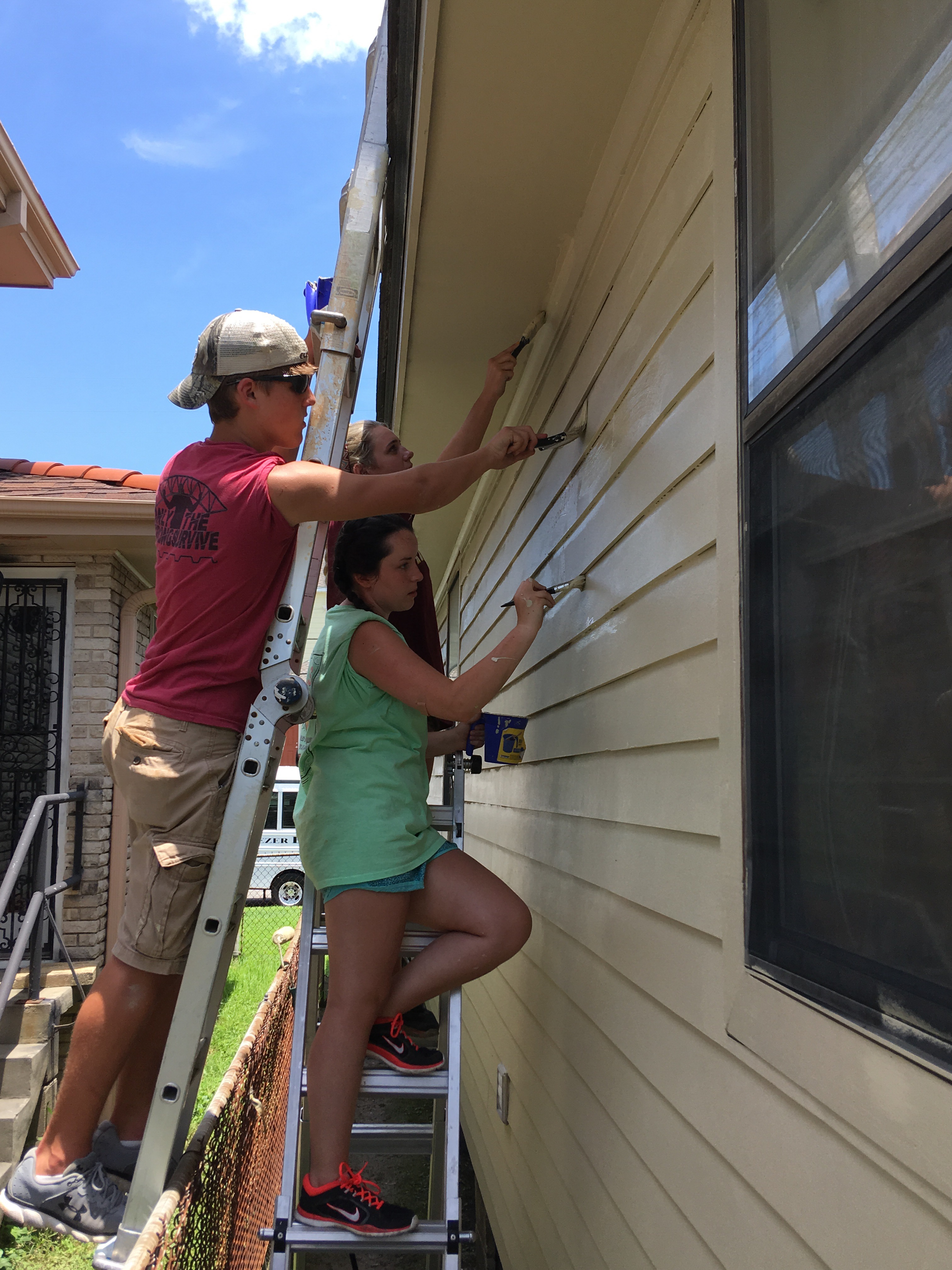 We started our day at morning devotions at 7am and ended with church group devotion in the park along the river in Jackson Square at 10pm. It’s been a full day of being poured out on the city. For me, the best description of today was written in a thank you note from the 95yr old man whose house we painted. He said, “Thank you for being sermons in shoes.” That’s what this week is about… being the hands and feet that bring the Good News. Pray for us Ebenezer. Three more days ahead of us!! God is doing big things in our hearts and lives.